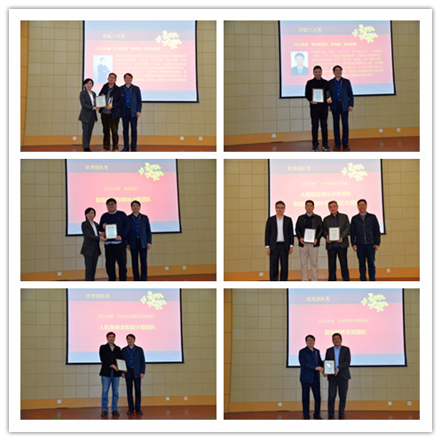 李春科宣读学院2022年度荣誉榜,院领导班子分别为获得学院“01创新奖”“青年新星奖”“最佳团队奖”“师资队伍建设优秀团队”“人才培养优秀团队” “科学研究优秀团队”等奖项的先进个人和集体颁发了奖杯和奖牌。