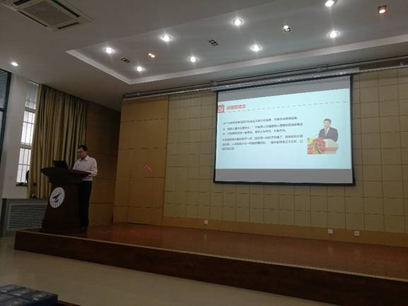 报告厅,党委书记於志文教授受邀,以“立志创新,勇做时代弄潮儿”为题,为毕业班学生上最后一堂思政课。学院党委副书记徐方暖,辅导员赵晨和廖泽泽一同参加学习。