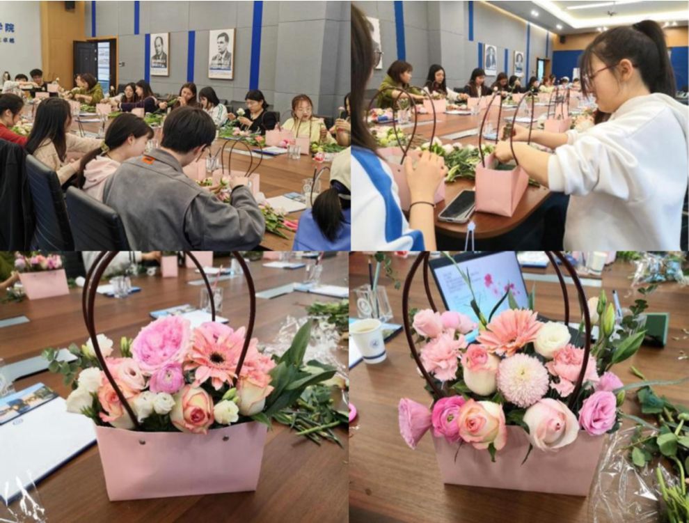 团委主办、研究生第十一党支部承办的“芳菲花韵,拈花拾趣”插花艺术活动于3月8日下午在学院105会议室顺利举办,带领30余名学院学生共赴一场春天的约会,在一枝一束、一插一剪中体验美育浸润。