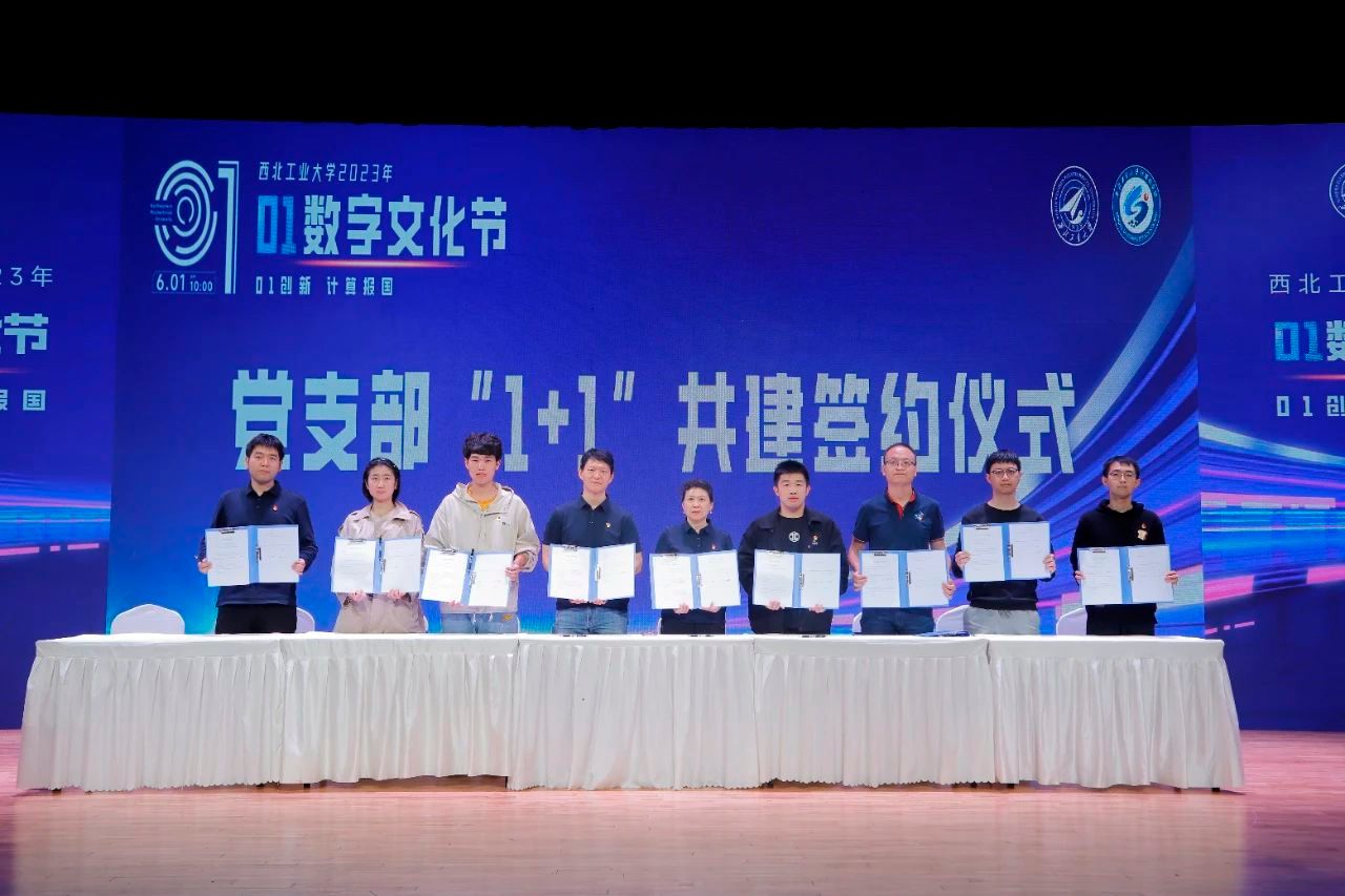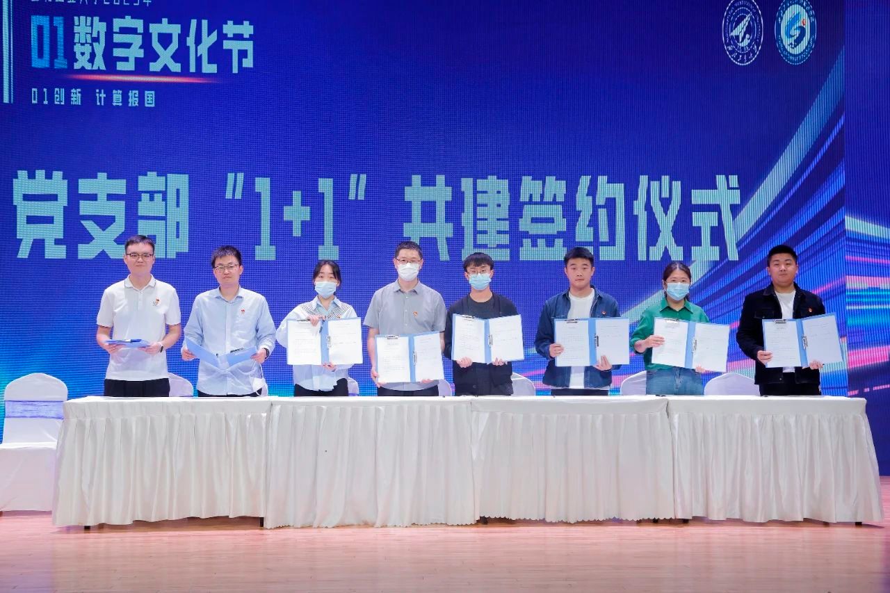 十个研究生党支部与631所、618所、771所、华为、中兴通讯、翔腾公司等单位对口基层支部书记(室主任),进行党支部“1+1”签约共建。