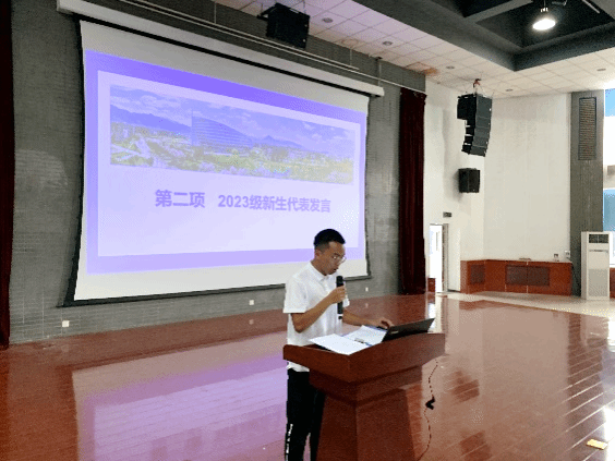 会议第二项,由2023级本科生冯炳宝代表全体新生发言。他表达了进入性爱直播