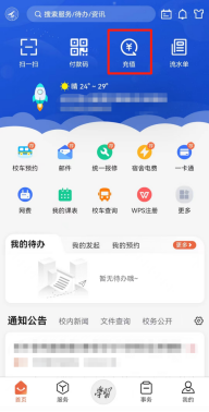 宿舍电费缴纳与空调使用相挂钩,新生首次进入需先选择“我的房间”,即自己的宿舍,然后进行缴费。