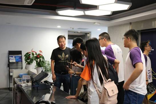 辅导员冉令燕带领15名西北工业大学本科生抵达河山街中大银座,拜访参观杭州哦耶科技有限公司,与创始人邓方涛邓总及几位西北工业大学毕业校友就本次社会实践主题之一“企业家精神”展开活动。