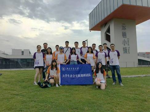 邓学长等人带领实践队前往参观云栖小镇。从露天操场到主建筑,一路上,学长为队员们讲解了云栖小镇发展历程与现代科技内涵,并高度肯定了本次社会实践的实际意义。
