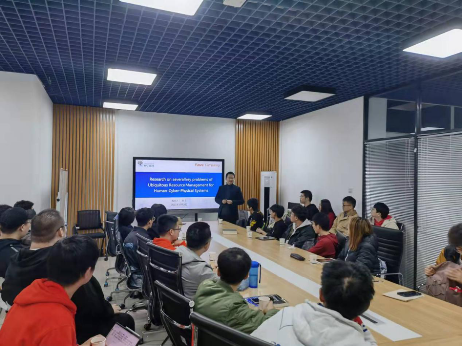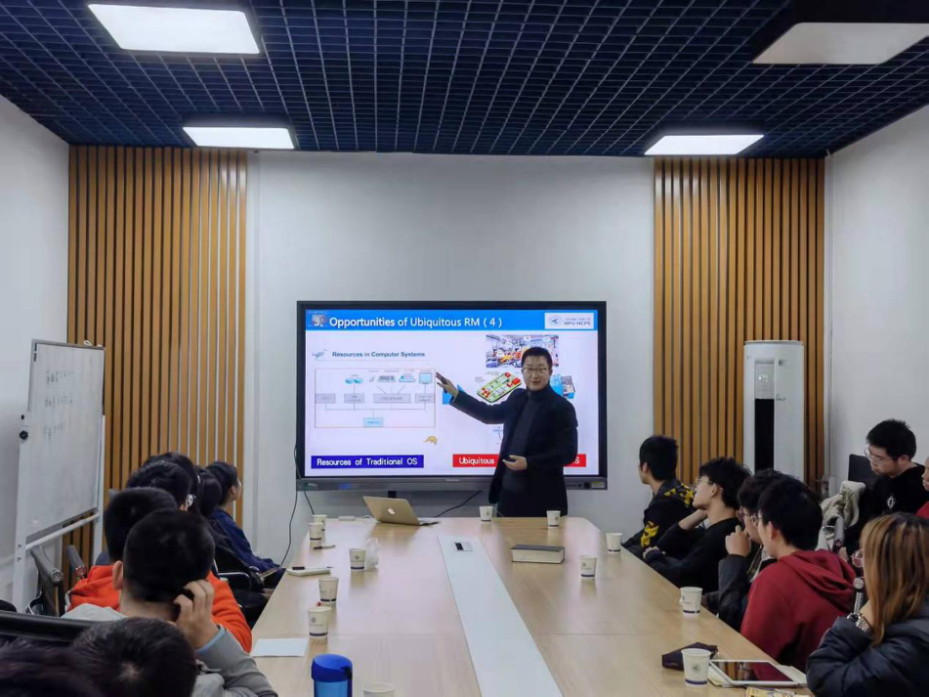 本次报告会主题为“Research on several key problems of Ubiquitous Resource Management for Human-Cyber-Physical Systems”。张羽老师先后从什么是HCPS(人机物融合系统)、HCPS的两个重要应用、泛化的操作系统中存在的机遇以及目前亟待解决的关键问题这四个方面给同学们进行了详细讲解。首先,张老师介绍了人机融合系统是指包含人类知识和人机协同的信息物理融合系统。相较于以往将机器与物品相互连通的观念,HCPS加入human元素,突出强调了人在信息处理、万物互联中的重要作用。张老师指出,HCPS适用于丰富多样的应用场景,如智能工业互联网工厂,智慧城市,健康物联网等等。在国家重大战略需求层面,人机物融合系统的应用主要体现在国防军事安全和人民生命健康两方面,在人民生命健康方面,要注重学科交叉融合,以新工科和新动能为核心,做到准确识别和科学应变。接着张老师又先后向同学们介绍了泛型RM和操作系统,并且为大家着重讲解了目前存在的关键问题,包括连通性问题、如何进行自适应管理等问题。