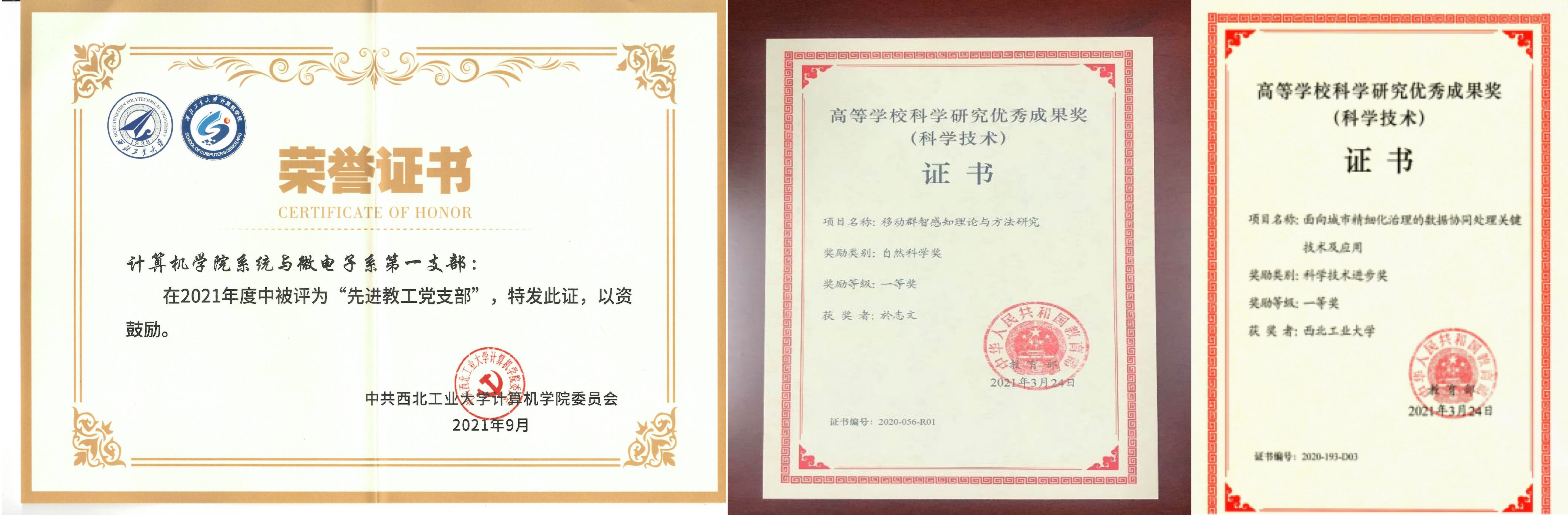 支部优秀党员和班子成员带头模范遵守党章党规,做好教学科研工作,争做“四讲四有”合格党员。扎实开展“弘扬爱国奋斗精神、建功立业新时代”活动,传承和弘扬以康继昌教授为代表的西工大老一辈计算机人“求真创新、立德树人、献身国防”的崇高精神。以“一位资深教授或领导干部”+“一位支部委员”+“一位新进青年教师”的“1+1+1”结对帮扶为抓手,细致了解每一位新进教师的思想动态和工作、生活情况,并通过组织一流学科方向建设与科技创新、自然基金申报辅导等专题研讨会,帮助青年教师尽快找准个人研究工作与团队研究方向的结合点,从而更快、更好地融入团队。近3年来,新入职的6位青年教师都是第一次申报即顺利获批青年基金,资助率100%。