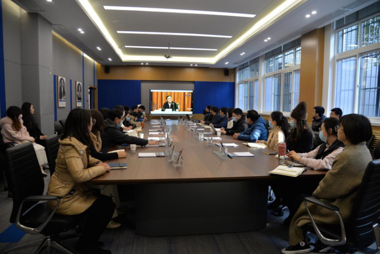 党委组织学院党委委员、领导班子成员、部分院办工作人员和师生代表分别在学院105、130两个会议室集中收看学习贯彻党的十九届六中全会精神宣讲报告。