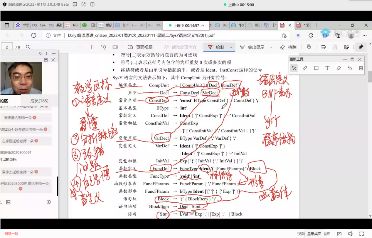 “为了给我们上好编译原理课,林奕老师专门购置了手写板,提前进行测试,还配合使用腾讯课堂、QQ群、课堂派等,为我们展示相关学习资源、课程竞赛,尽管与老师隔着屏幕,依然觉得十分亲切。在课堂上大家也积极互动,生动演绎着“网课快乐生”的角色!”计算机科学与技术专业大三学生张颖说。