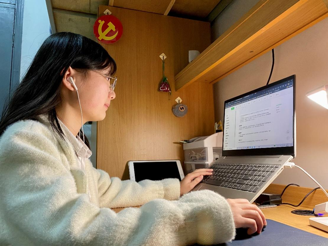 来自江西的大一学生程雨萱,温故而知新,一边复习以前的知识,一边跟进线上新课程。