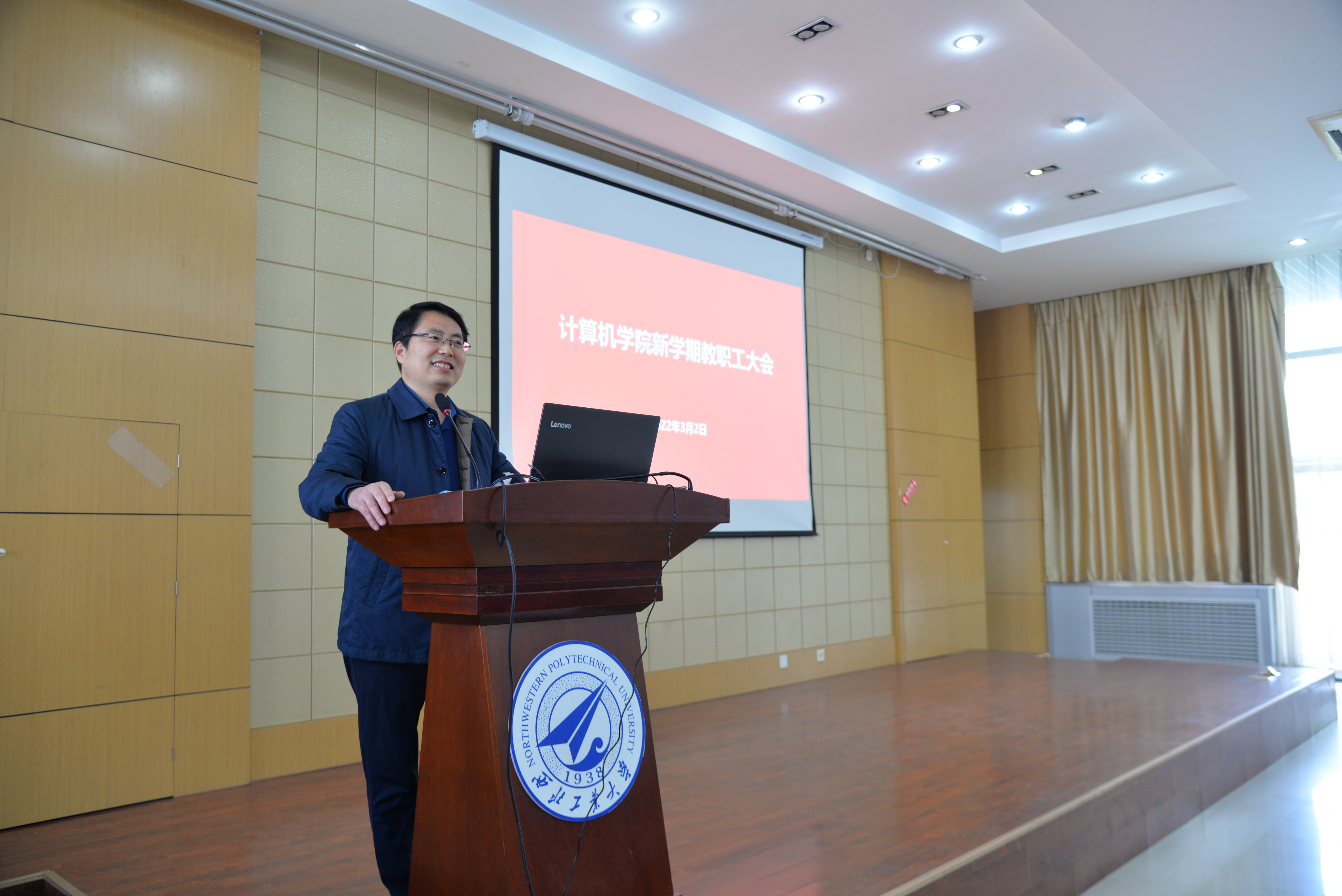 在学院报告厅召开新学期教职工大会,学院全体教职工参会。会议由学院党委书记李春科主持。