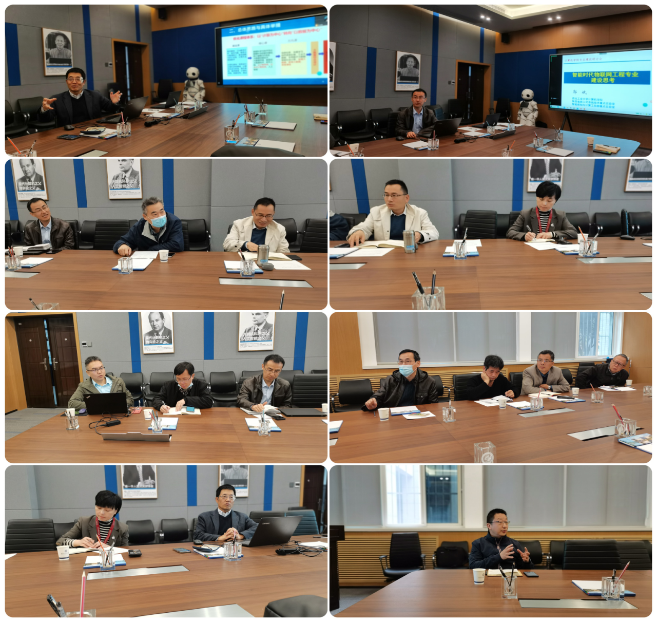 数据科学与大数据技术、物联网工程、人工智能三个专业的负责人李战怀、郭斌、王鹏依次对专业现状与问题分析、建设思路与具体举措、预期规划与建设成效进行了汇报。