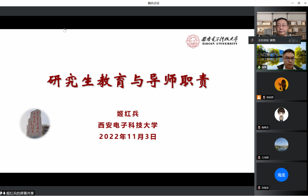 召开了“2022年度第二场研究生导师培训会”,主题为“研究生教育与导师职责”。由于疫情防控的需要,本次培训会采用线上形式召开,邀请了西安电子科技大学原研究生院常务副院长、发展规划处处长兼211工程办公室主任姬红兵教授担任主讲,性爱直播