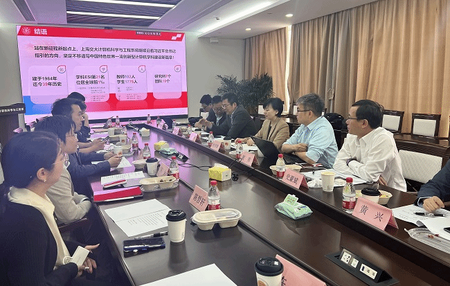 院长尚学群带领班子成员赴上海交通大学调研交流。上海交通大学计算机科学与工程系主任吴帆、党总支书记朱浩瑾、以及有关负责人参加了座谈。