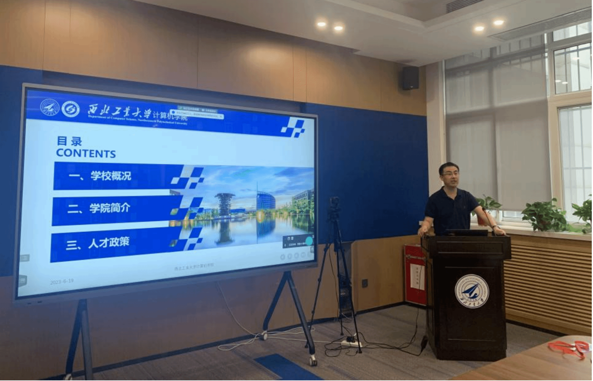 ,早日加盟西工大。郭斌对学院发展沿革、师资队伍、学科优势、科学研究、国际合作及人才引育政策等方面进行了系统的介绍,并诚邀优秀青年学者加盟学院,增强学院在优势学科方向和新兴交叉学科方向的研究实力,为学科团队注入新的活力。