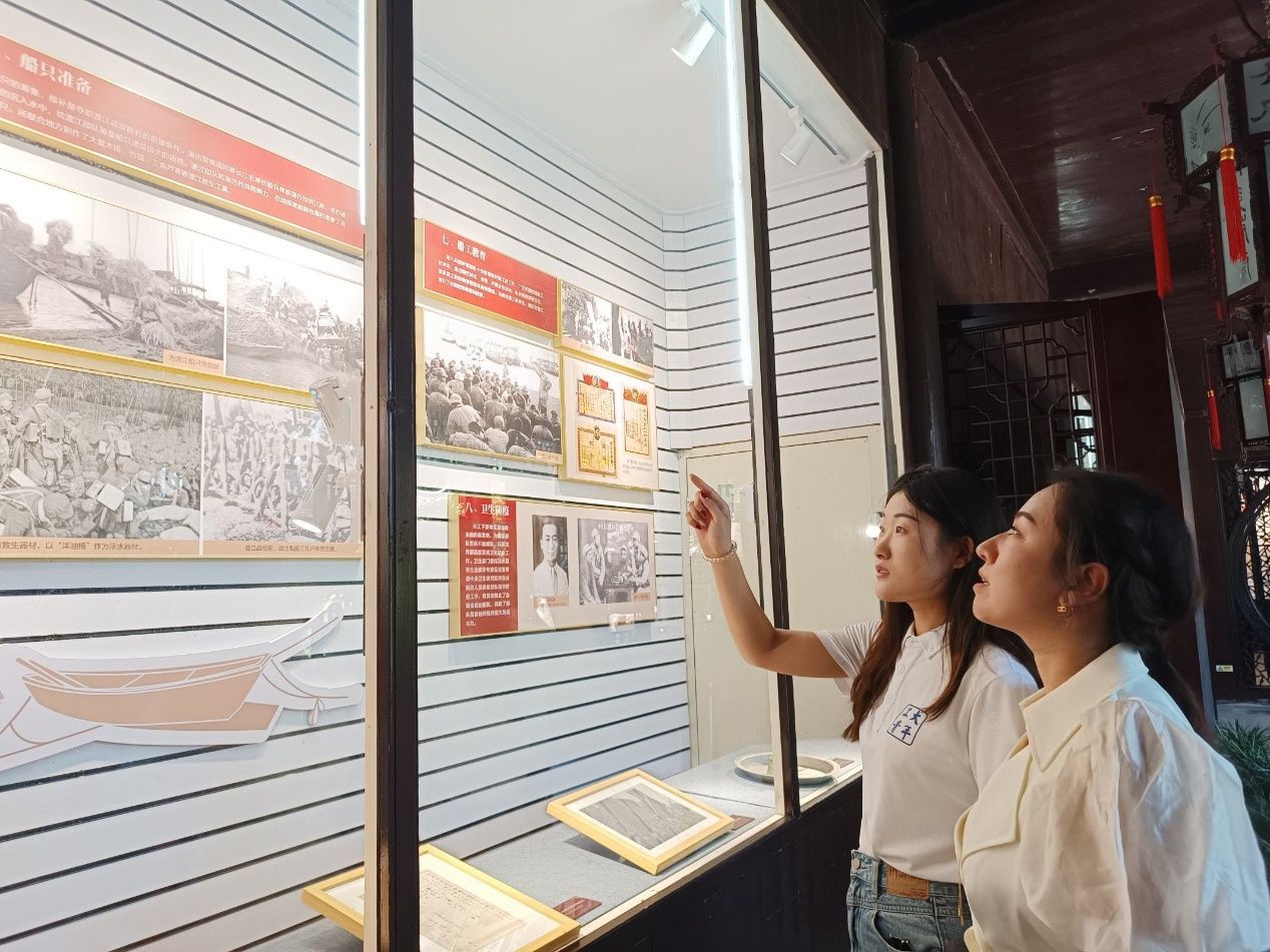 英名垂青史,热血铸丰碑。随后,实践队来到了被誉为“国内孤例”的个园。一方面,个园因“竹”而闻名,“不出户而壶天自春,尘马皆息”;另一方面,个园与红色历史息息相关,当年中国人民解放军第八兵团渡江战役指挥部就设在个园抱山楼。怀着崇敬之心,实践队员们走进了这座镌刻红色往事的楼阁。珍贵的历史图片、见证“血与火”的革命文物、按比例复原的指挥场景,一一再现了解放军浴血奋战、横渡长江的英勇气概和扬州人民舍生忘死、全力支前的无私奉献精神, 反映了军民团结一致、并肩战斗、为解放全中国作出的卓越贡献。2021级硕士王一贵深受触动,他表示:“和平与幸福来之不易,我们要铭记历史、不忘初心,走好新时代的长征路!”
