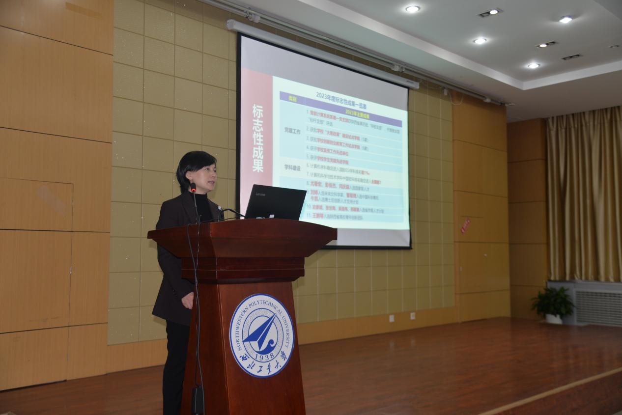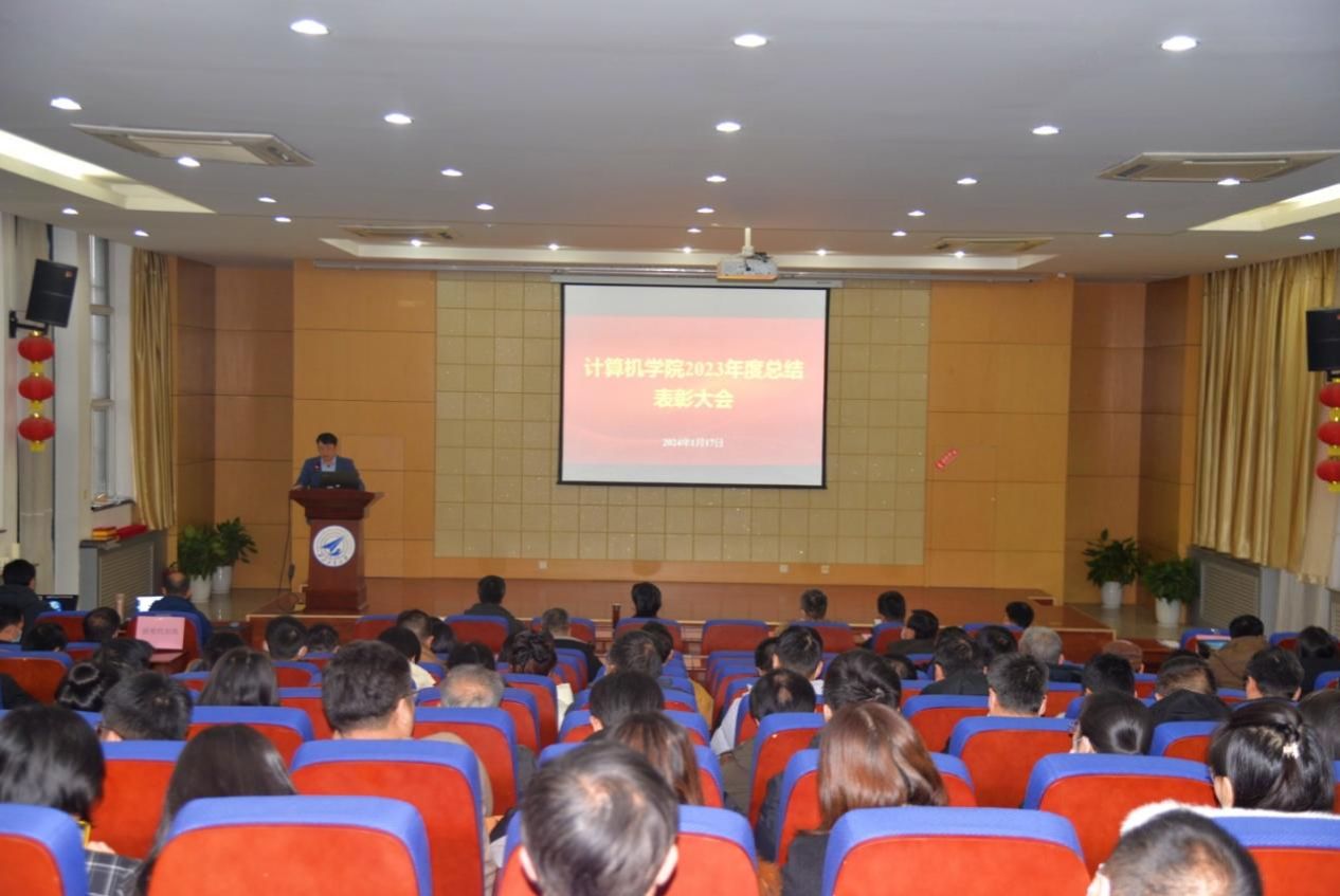 在学院报告厅召开2023年度总结表彰大会,学院近两百名教职工出席会议,会议由学院党委书记李春科主持。