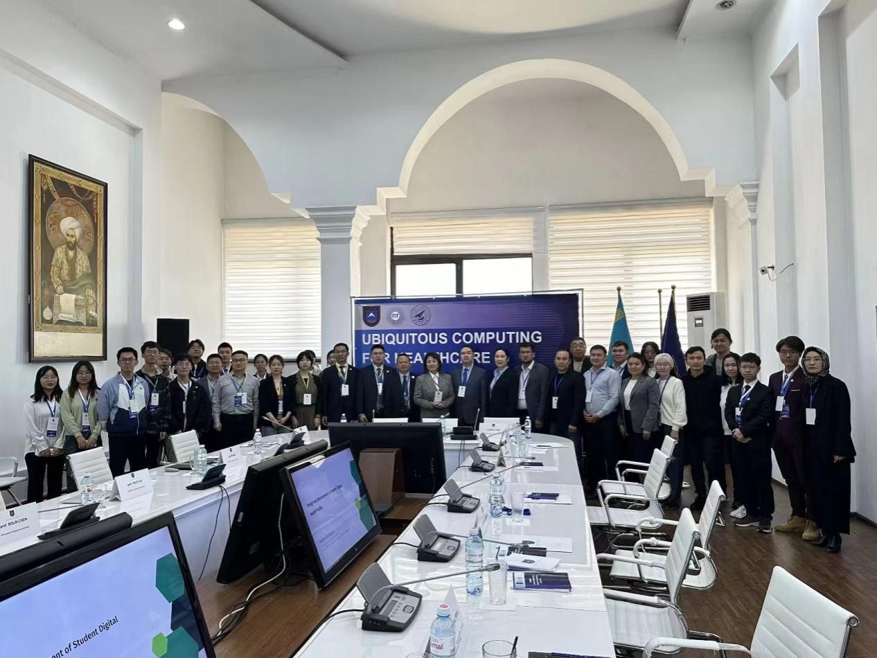 崔禾磊、陈伯林、潘永生等教师代表及14名学生代表来到哈萨克斯坦国立大学共同举办2024年“一带一路”智能物联网国际合作联盟泛在健康感知与计算双边研讨会。本次会议由“一带一路”智能物联网国际合作联盟发起,获得了哈萨克斯坦国立大学、西北工业大学以及中国计算机学会(CCF)的鼎力支持,聚焦于“普适计算在医疗健康领域的应用”的深入探讨。