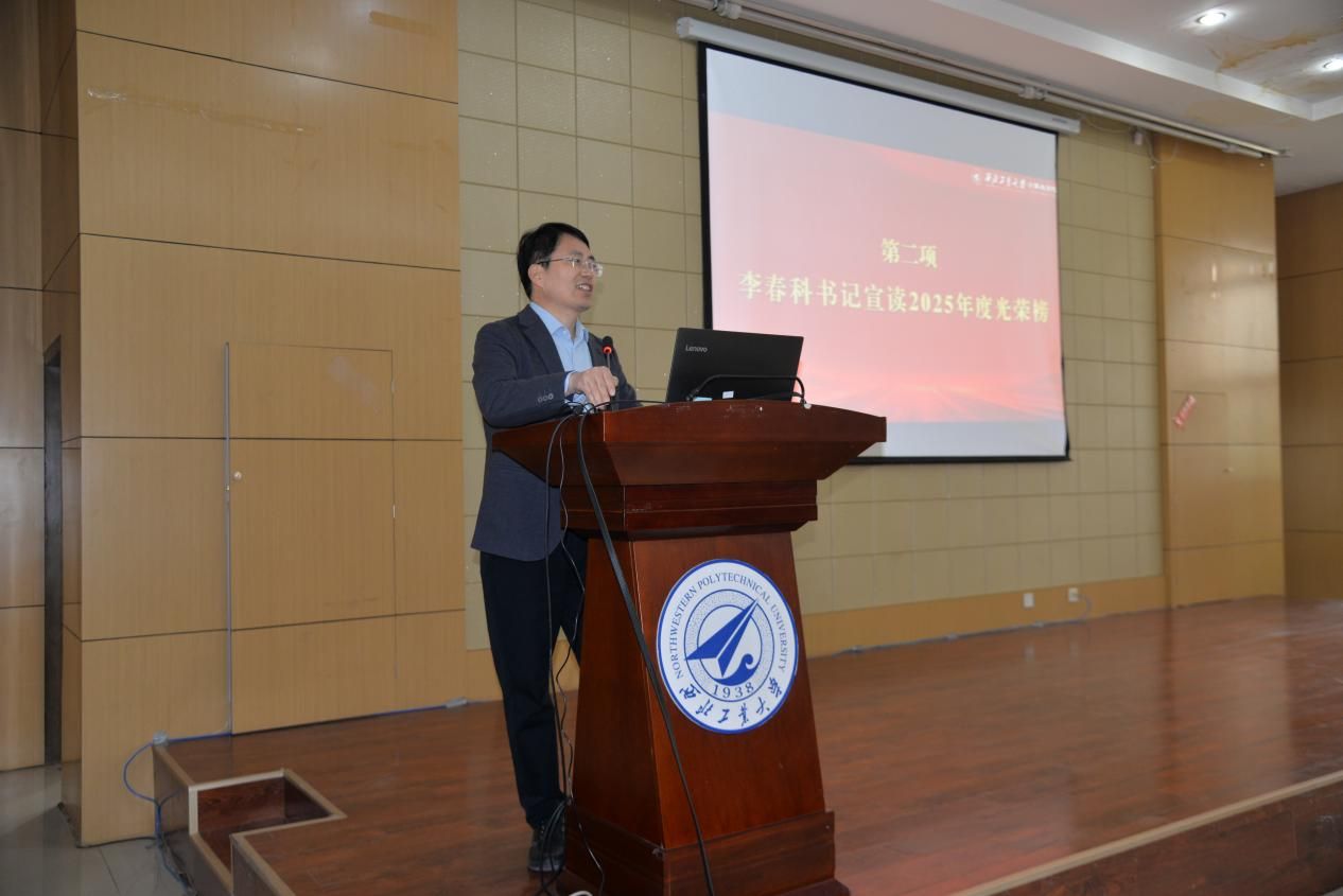 李春科宣读2025年度光荣榜,号召广大教职工向榜样学习,向先进看齐,百舸争流,创先争优。