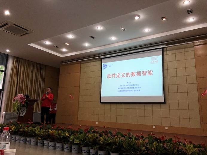 随后,黄罡教授分享了关于软件定义的数据智能相关知识,并以个人科研经历告诉大家要学会坚持,教导了参会的学生们应当坚持一个感兴趣的科研方向潜心研究。