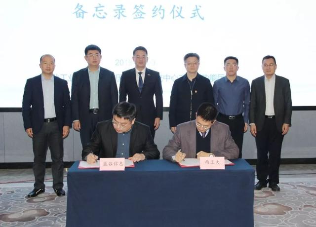 北汽蓝谷信息高广慧、西北工业大学重点实验室主任李战怀代表双方签订合作备忘录