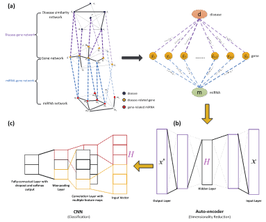 第一篇论文题为《A learning-based frame work for miRNA-disease association identification using neural networks》,开发了全世界首个预测疾病相关的microRNA(miRNA)的深度学习模型。miRNA是一种非编码RNA,大量研究表明,miRNA与多种疾病密切相关,因此miRNA是多种疾病的潜在药物靶点。该论文构建了包含更丰富miRNA和疾病关联信息的三层网络模型,并通过深度学习模型获取miRNA和疾病特征,预测miRNA和疾病关系。课题组的青年教师彭佳杰副教授、陈伯林副教授以及研究生惠薇薇、李倩倩同学是该论文的共同作者,尚学群教授为文章的通讯作者。