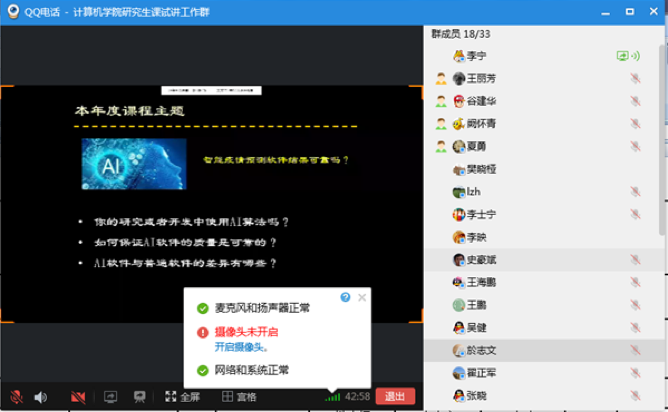 院长於志文听了所有任课老师的课程后指出,采用视频在线试讲可以快速了解各门课程的准备情况和教师的状态,非常地高效,以后可以继续采用。所有授课老师都在线参加,是个很好的观摩学习的机会,不同老师有不同的做法和特色,特别是一些好的做法可以相互借鉴,比如授课前考试摸底、随堂测试、课件设计、调动学生兴趣和注意力等。这种形式对有些准备不够充分,不够重视的老师是个压力,可以督促他们认真做准备,提升课程质量。