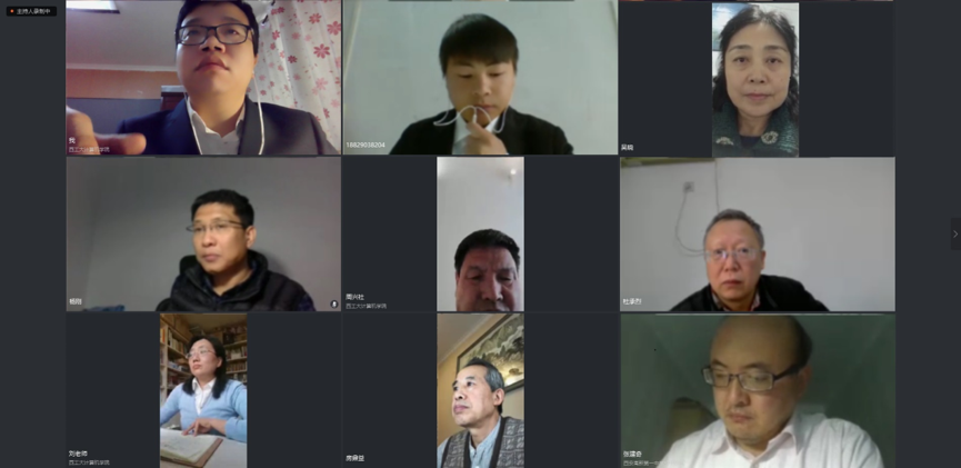 第一个进行视频答辩的课题组。视频答辩从早上7:30分开始一直进行到晚上19:00,中间仅休息一个小时。在经过了论文汇报、回答问题、决议讨论和评审打分等环节后,7名同学均顺利通过了硕士学位论文答辩。整个过程中,周兴社同志充分发挥了一名老共产党员的表率作用。