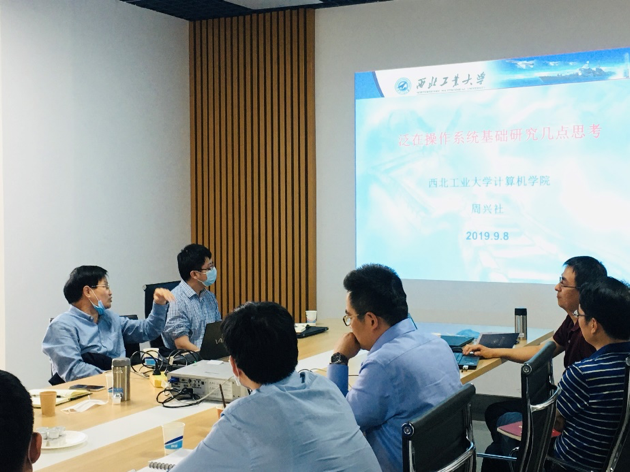 接着,周兴社教授作了题为“泛在操作系统基础研究的几点思考”的报告,他从再认知操作系统、时代背景及其特征、深化泛在操作系统的主要挑战和问题、泛在操作系统的内涵等方面分享了自己的思考和见解,强调确立泛在操作系统基础研究目标时,设计方法力求原创,系统原型独辟蹊径,领域实力突破瓶颈。