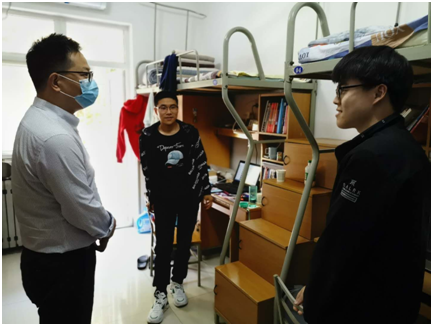 5月14日下午3点,为进一步提高学生疫情防控意识,学院党委副书记万海东,辅导员张世周、高云走访了学生宿舍,关心同学们的生活状况。