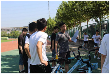 上午9:30,大部分同学已经到达操场,开始布置场地,10:00比赛正式开始,裁判先向大家介绍了比赛规则,并依次开始龟兔赛跑、自行车障碍赛等比赛项目。