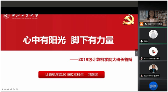 2019级本科生通过腾讯会议成功完成大班委竞选,组建了新一届大班班委会。学院270名2019级本科生,辅导员梁韵基、刘佳琪老师和兼职辅导员王静参加了本次竞选会。会议王静主持。