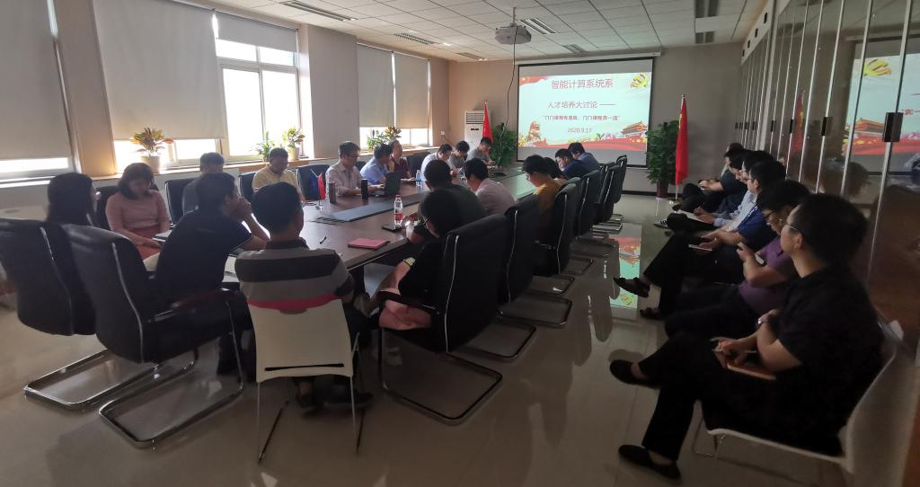 智能计算机系统系召开人才培养大讨论专题会议,学习贯彻落实汪劲松同志在2020年暑假学习研讨会暨新学期干部大会上的讲话精神,深入开展人才培养大讨论。会议由系主任张羽主持,夏勇副院长、郭斌院长助理代表学院参会,各科研团队负责人、教学团队负责人、课程负责人分别发言,系全体教师参与研讨。