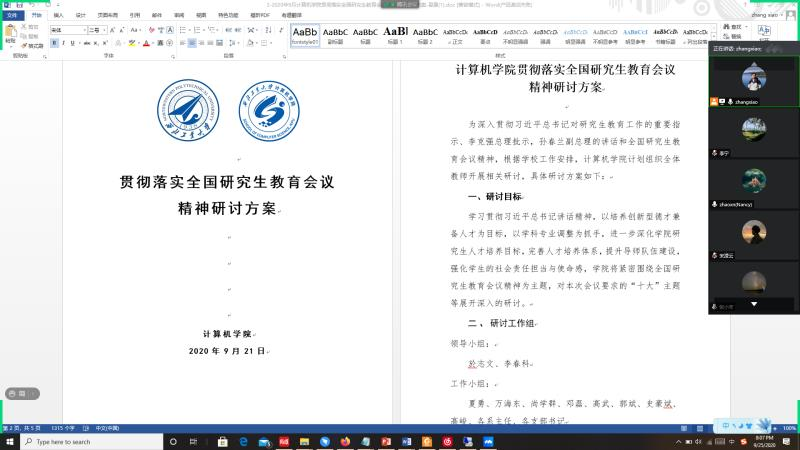以各系为单位,分别召开了“全国研究生教育会议精神”教师学习和研讨会,共有70余名教师代表参加,於志文院长、李春科书记和学院领导班子成员分别参与了各系的研讨。本次会议采用线上与线下相结合的形式进行,学习了全国研究生教育会议精神,并围绕研究生思政工作建设,优化学科布局,研究生教育创新内涵式发展,提升导师队伍,完善人才培养质量体系等十大议题进行了深入的讨论。