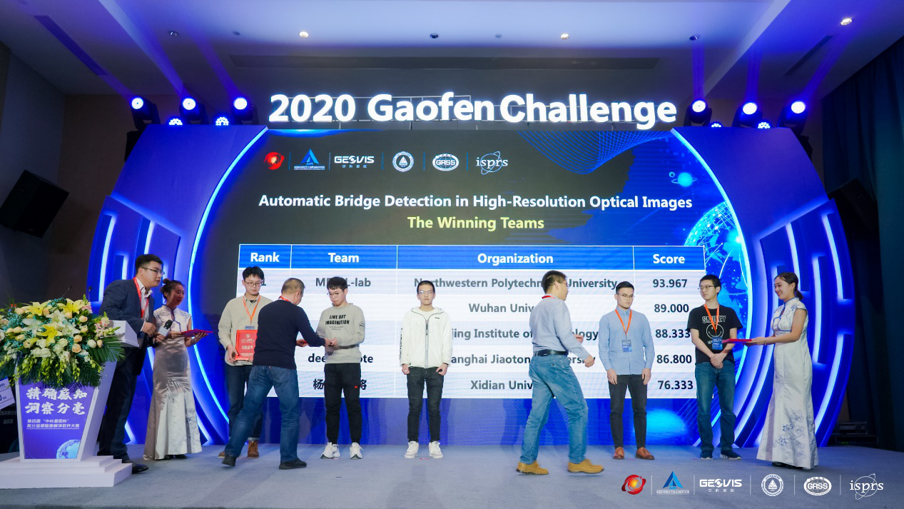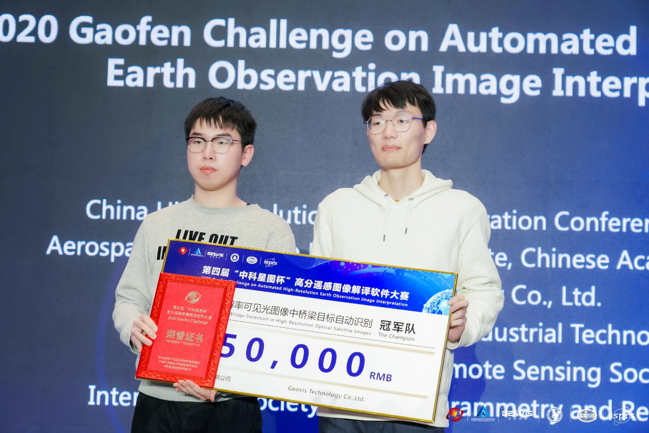空天地海一体化大数据应用技术国家工程实验室“多维视觉信息感知与学习”课题组硕士生孙宇轩和李威,在带队老师魏巍副教授和张磊教授的指导下,在高分辨率可见光图像中桥梁目标自动识别 赛道上取得了冠军。这是我校科研团队第一次在该项赛事上取的冠军,展示了我校高分遥感数据解译这一方向上的技术实力。