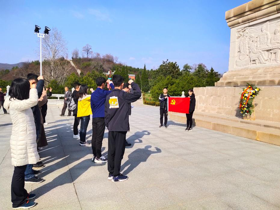 随后李春科带领全体师生党员来到陕甘边革命根据地英雄纪念碑下,缅怀烈士并向英勇献身的烈士们敬献花篮并默哀,绕碑一周以表敬意。面向党旗庄严宣誓,铭记一名共产党员的初心和使命。