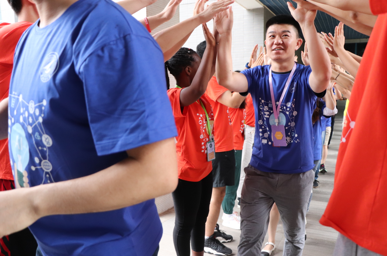 上午9:30,开营仪式在极具特色的入场欢迎和经久不息的热烈欢呼声中开始,志愿者们搭起营会特有的欢快、亲和、阳光和国际的彩虹桥,与老师们逐一击掌,表示热烈的欢迎。