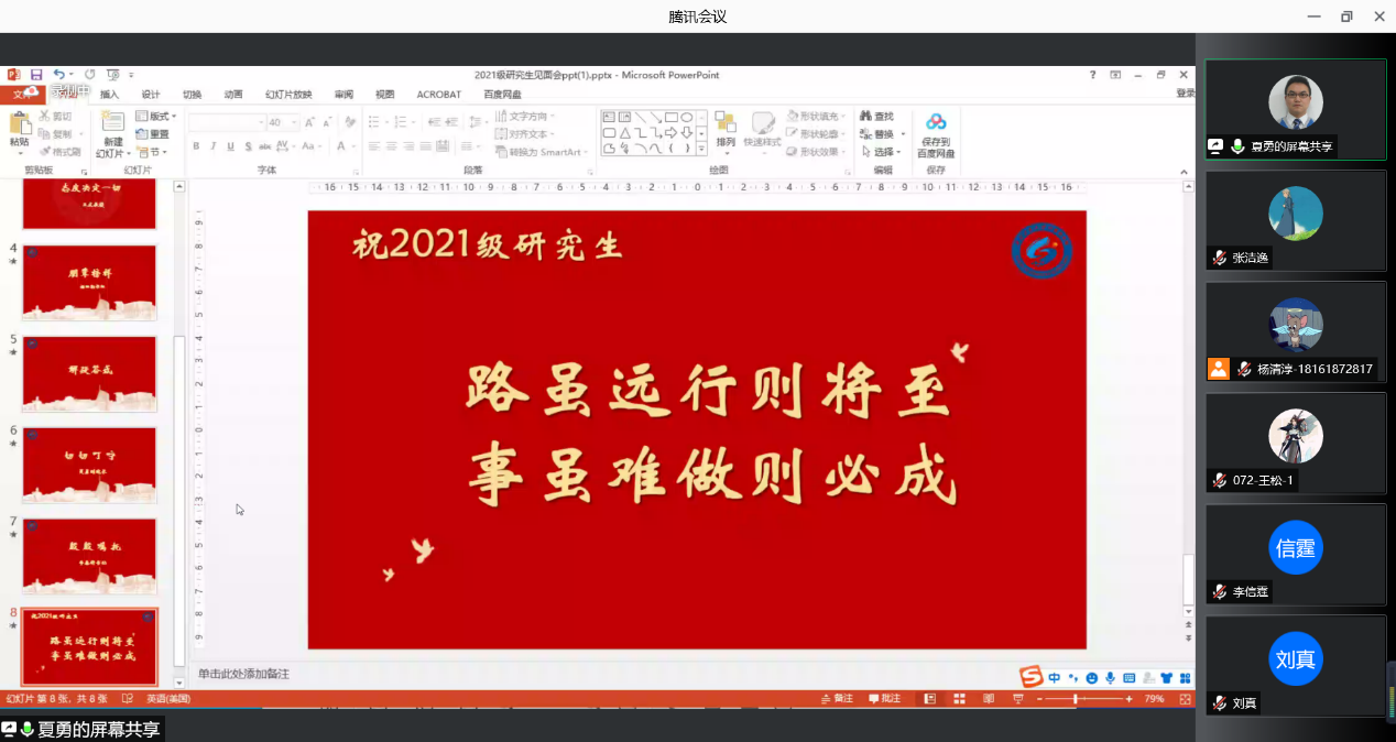 及研究生学习、生活有了更加全面、清晰的认识和理解,帮助他们更好更快地适应研究生新生活。望同学们能够珍惜韶华,学有所成,研有所就。