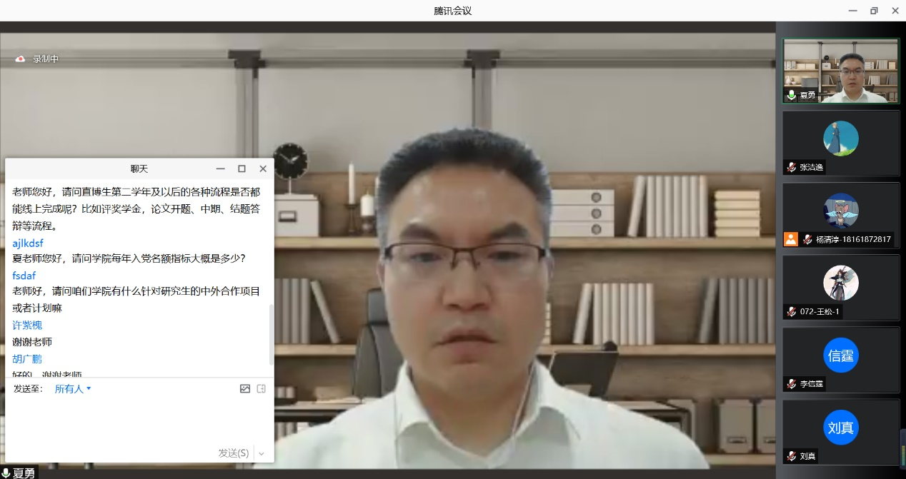 在答疑环节,同学们积极提问,夏勇、万海东等相关负责人耐心地为大家解答了关于硕博连读申请时间、如何寻找合适的研究方向、奖助学金政策和公派留学申请流程等问题。