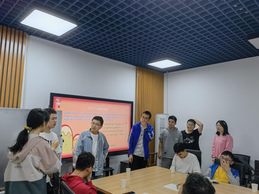 为了提升活动的参与感和学习效果,报告会开始前在侯奕丁同学的带领下,大家围坐在一起分小组进行了有趣的全英文环境破冰活动。在“You Gesture I Guess”和“7 Is Important”的两组活动中,大家集思广益、相互配合,很快在互动交流之间增进了信任、理解和包容,让本不熟识的个体成了共同学习团体,为学习国际学术报告内容起到了很好的预热作用。