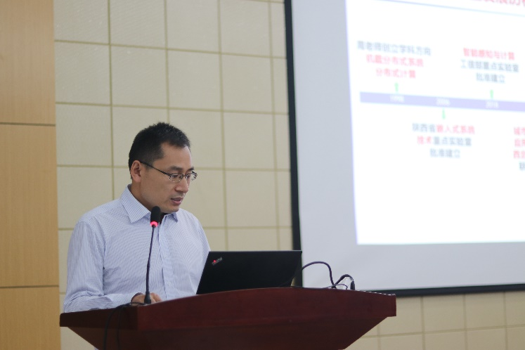 首先由实验室原主任周兴社教授发言致辞,周老师向新加入实验室的研究生同学表示热烈欢迎,希望同学们能夯实专业基础、培养创新思维,要对研究生生活有新的方向和追求,要面向国家需求与民族未来,只争朝夕,不负韶华,奉献精彩人生。