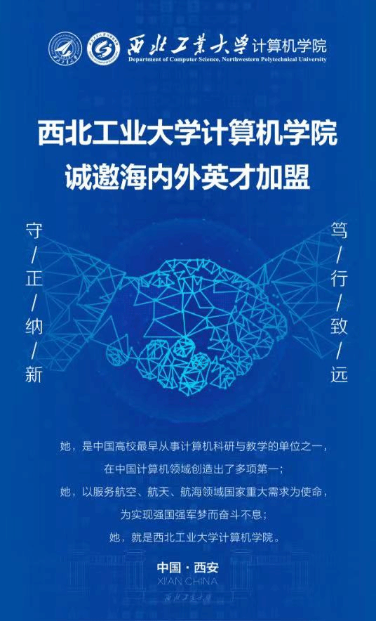 西北工业大学(简称西工大)坐落于陕西西安,是一所以发展航空、航天、航海等领域人才培养和科学研究为特色的国家“双一流”建设高校,隶属于工业和信息化部。学校1960年被国务院确定为全国重点大学,“七五”“八五”均被国务院列为国家重点建设高校之一,1995年首批进入“211工程”,2001年进入“985工程”,2017年进入“一流大学”建设高校(A类)行列,是“卓越大学联盟”成员高校,是“一带一路”航天创新联盟发起高校。今天在加快建设中国特色世界一流大学和一流学科上续写新的辉煌。