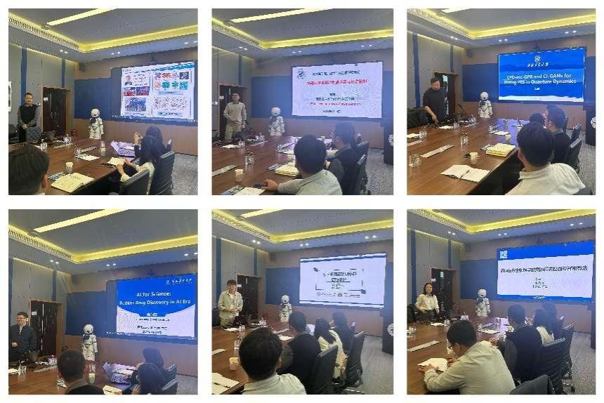 随后,彭佳杰介绍了AI for science交叉研究中心的建设背景、思路与举措、近期成效以及下一步研究计划。双方与会青年教师分别就AI制药、生物医学数据库、大数据模型高强韧仿生高分子、电化学储能等研究领域作了精彩绝伦的报告分享,大家结合自己的研究领域畅所欲言,互有启发,碰撞出了思维火花。