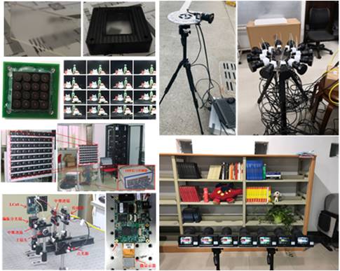 4) 计算摄像研究环境。拥有可变参数的聚焦式光场相机、阵列式光场成像系统、面向移动设备的微相机阵列光场成像装置、编码孔径光场相机。在自研光场相机的基础上,项目组研制全景光场采集及自由视点合成渲染系统、高质量光场采集及密集光场重建系统统筹等。详见//www.npu-cvpg.org。