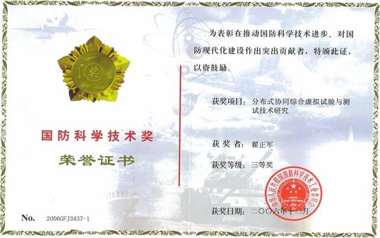 7) 计算机测控与仿真技术研究所:近年来先后获得国防科技进步一等奖1项、国防科技进步二等奖1项、国防科技进步三等奖1项,国家科技发明三等奖1项,陕西省、航空航天部、中航集团科技进步二等奖4项次、三等奖2项。部分成果填补了国内空白并在型号工程中得到应用,为新型装备的研制发挥了重要作用。