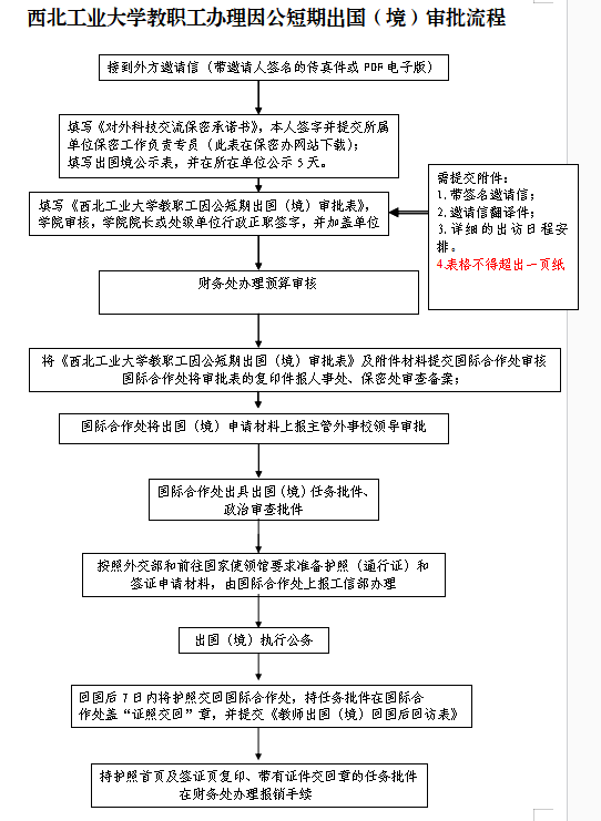 西北工业大学教职工办理因公短期出国(境)审批表及办理流程