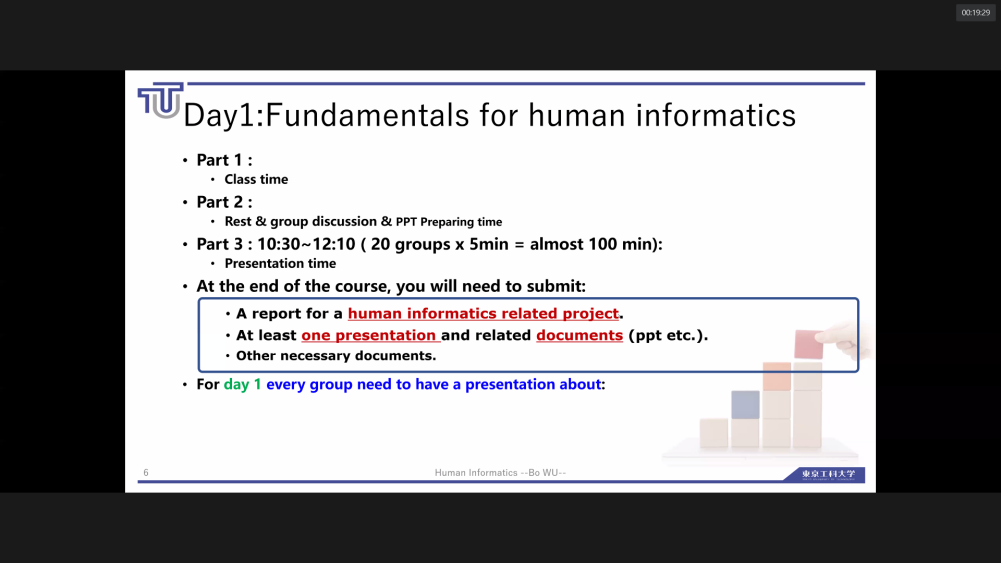 课堂上,授课教师老师借助Zoom会议的分组讨论功能,鼓励同学们在课程学习中合作交流,完成指定的任务,并在每次课堂的分享环节中用PPT展示小组的成果,充分锻炼了同学们独立思考、沟通协作、解决问题的能力。对大部分学生来说,人类信息学都是一个陌生的领域,通过课程的学习,很多学生都这一领域产生了浓厚的兴趣,在课堂中和课堂外的讨论区和微信群交流中,学生们提了很多问题,在课堂中进行了热烈的讨论。课程为学生开拓视野、增长见识、提高了学生对数学计算机等领域的认知水平,有利于学生未来的职业发展。