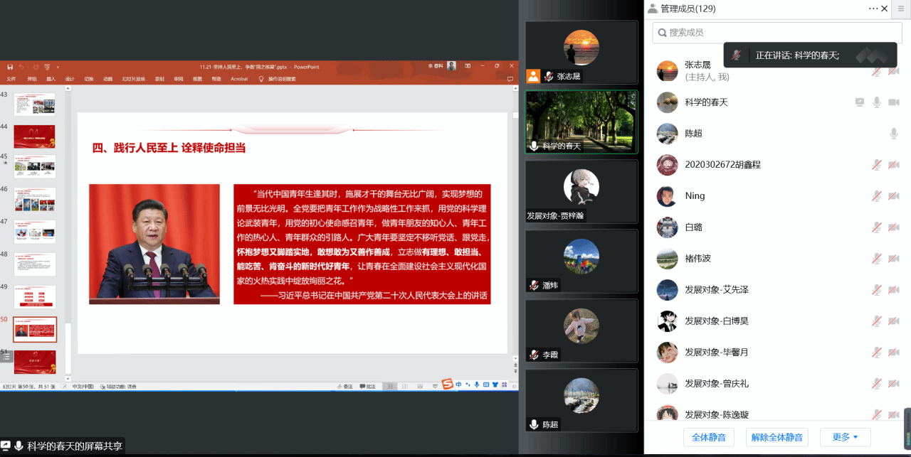 近期,学习贯彻和宣讲党的二十大精神正在性爱直播 迅速开展之中。11月21日晚,学院党委书记李春科以“坚持人民至上,争做国之栋梁”为主题,为学院近200名师生宣讲二十大精神和讲授专题党课。本次宣讲也是性爱直播 二十大精神学习系列报告第四讲,会议以线上形式举行。